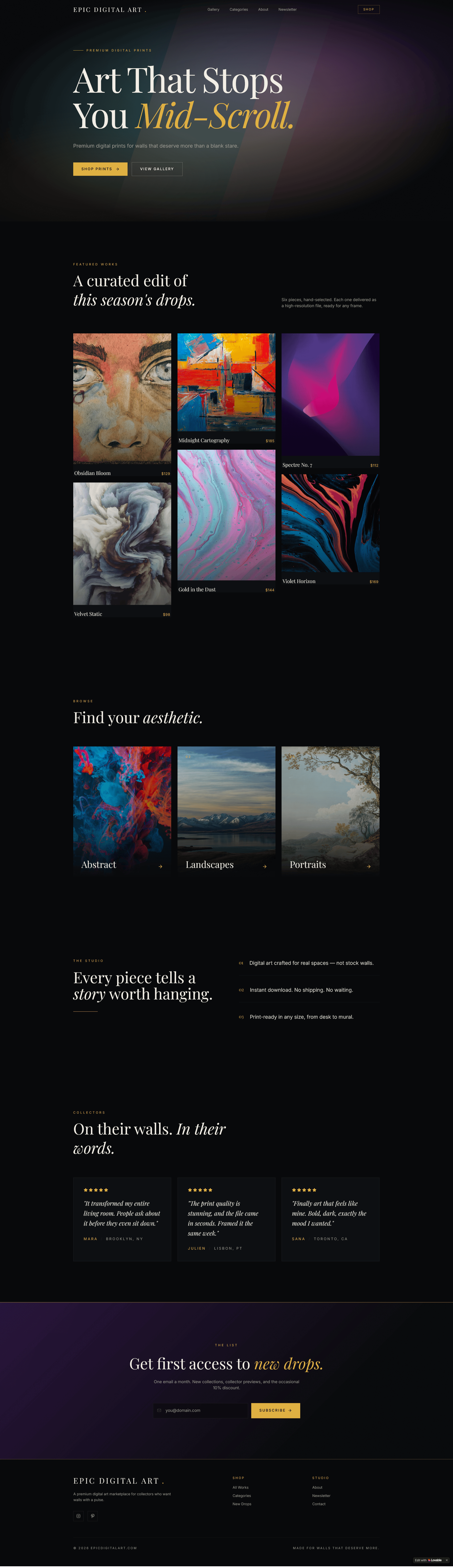 A premium digital art marketplace for walls that deserve more than a blank stare.